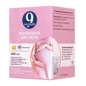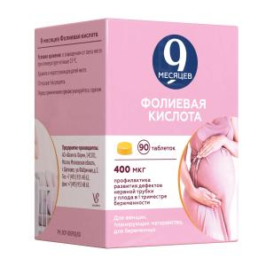 9 месяцев Фолиевая кислота таблетки покрытые пленочной оболочкой 400мкг №90