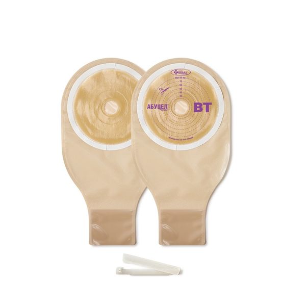 АБУЦЕЛ®-ВТ – для стомы диаметром от 20 до 80 мм. Калоприемники АБУЦЕЛ-ВТ выполнены из непрозрачной пленки телесного цвета с мягкой сетчатой подкладкой, прилегающей к коже. Пластиковый запорный элемент прилагается отдельно и рассчитан на несколько емкостей. Калоприемник может оставаться на коже в течение нескольких дней, не вызывая раздражения в месте крепления и обеспечивая комфортные условия для кожи вокруг стомы.