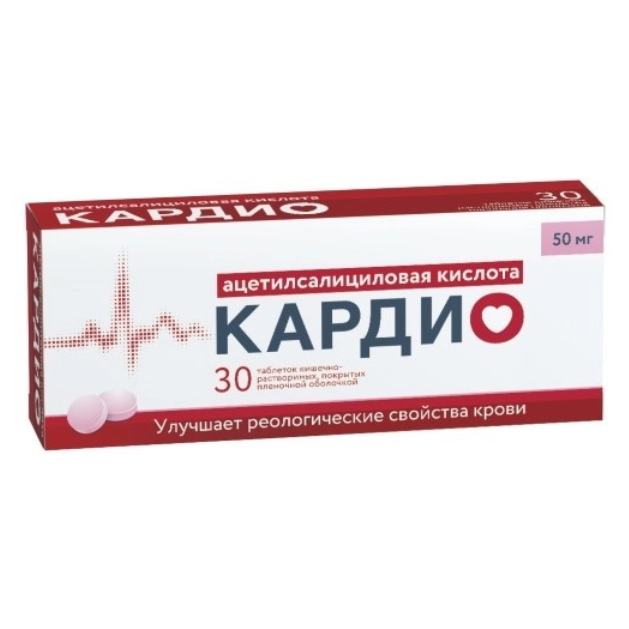 Ацетилсалициловая кислота Кардио таблетки кишечнорастворимые покрытые плёночной оболочкой 50мг №30