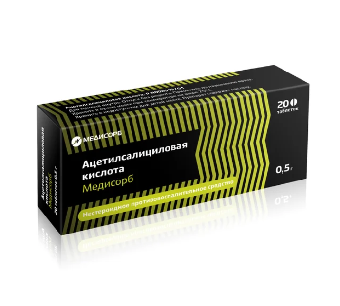 Ацетилсалициловая кислота Медисорб таблетки 0,5г №20