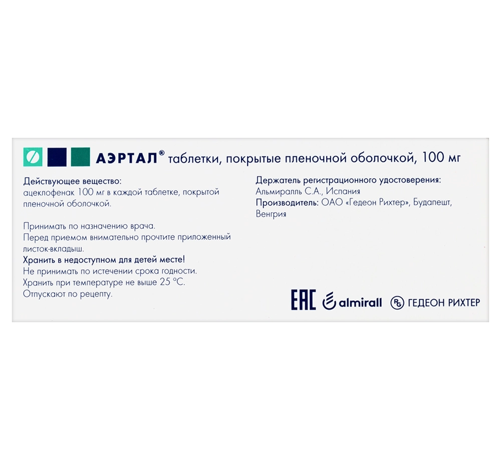 Аэртал®, таблетки, покрытые плёночной оболочкой, 100 мг противопоказан при беременности. Информация о применении ацеклофенака при беременности отсутствует. Угнетение синтеза простагландинов может неблагоприятно влиять на течение беременности и/или развитие эмбриона/плода.