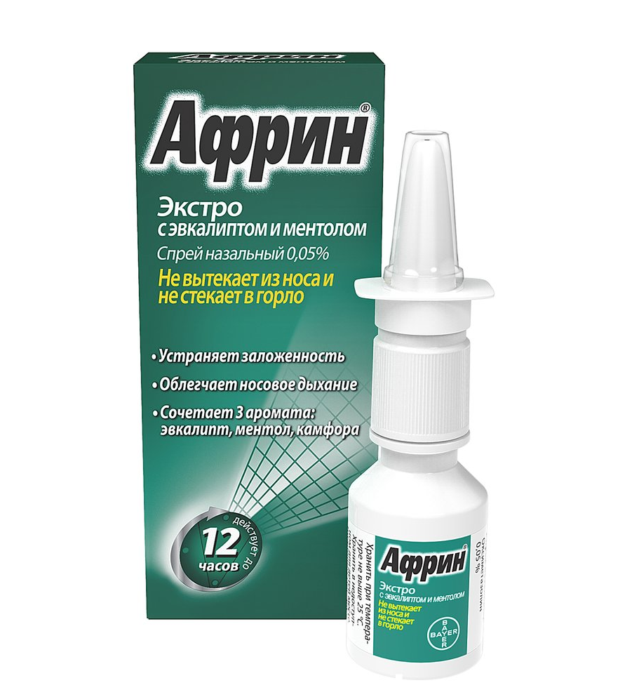 За счёт наличия в составе лекарственного препарата вспомогательных веществ (целлюлозы микрокристаллической и кармеллозы натрия и повидона-К29-32) Африн экстро спрей назальный не вытекает из носа и не стекает в горло, так как после введения в носовые ходы спрей становится более вязким и удерживается на слизистых оболочках носа более эффективно, чем стандартный водный раствор.