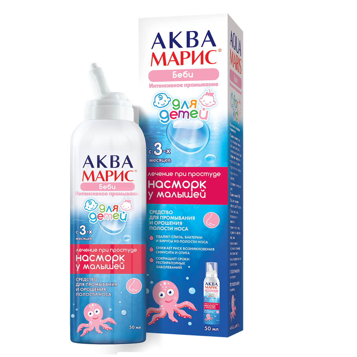 Давление в баллоне «Аква Марис® Беби. Интенсивное промывание» не превышает 7,2·105 Па, обеспечивая деликатное промывание носика малыша с помощью «мягкого душа».