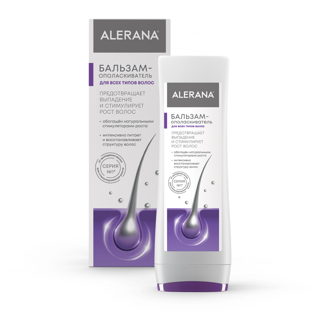 Бальзам-ополаскиватель с увлажняющими компонентами ALERANA для восстановления структуры, уменьшения ломкости и облегчения расчесывания волос.