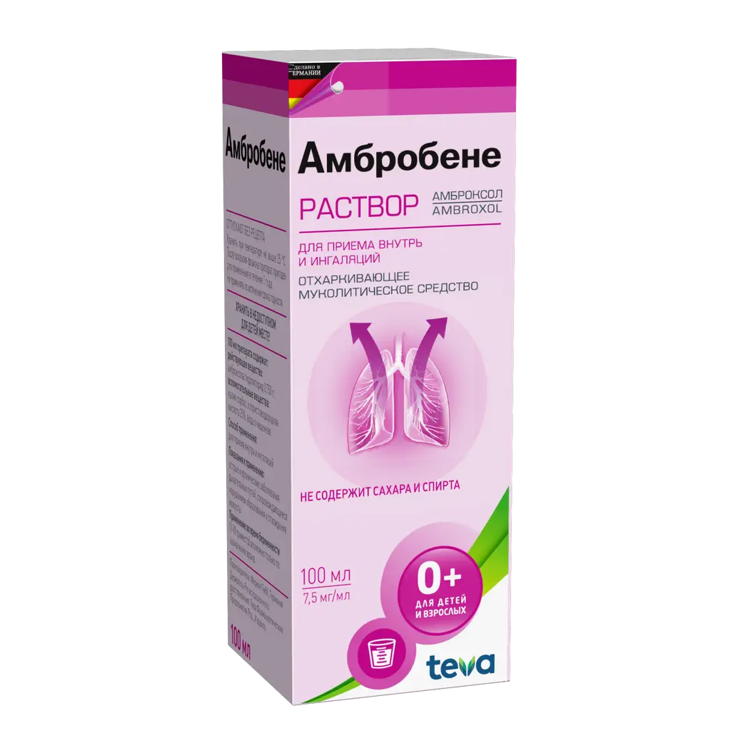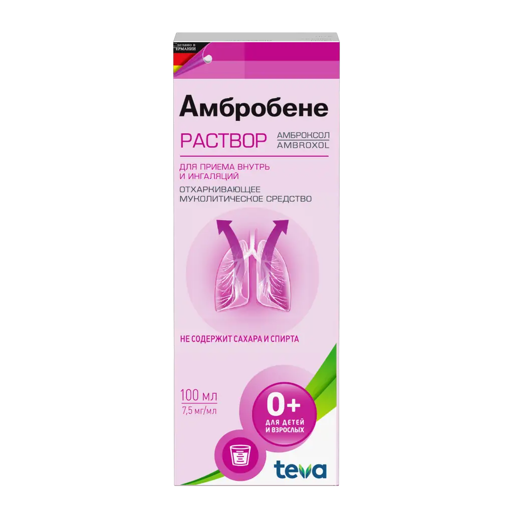 Амбробене раствор для приема внутрь и ингаляций 7.5мг/мл флакон-капельница 100мл