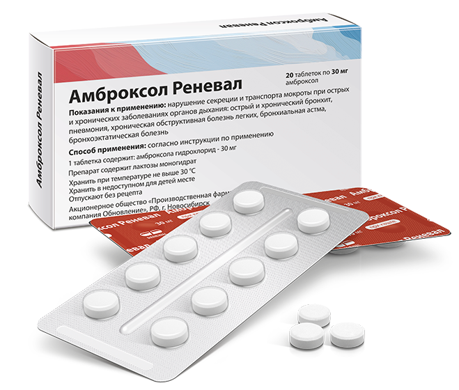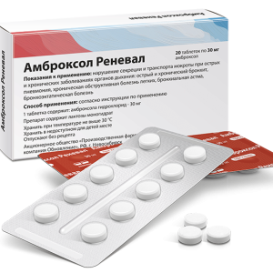 Действующее вещество: амброксола гидрохлорид — 30,0 мг