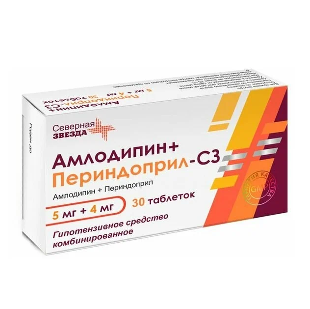 Амлодипин+Периндоприл-СЗ таблетки 5мг+4мг №30
