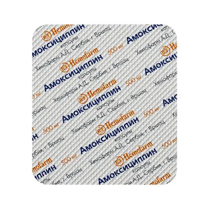 действующее вещество — ;амоксициллин ;500,00 ;мг (в форме амоксициллина тригидрата 573,9 ;мг);