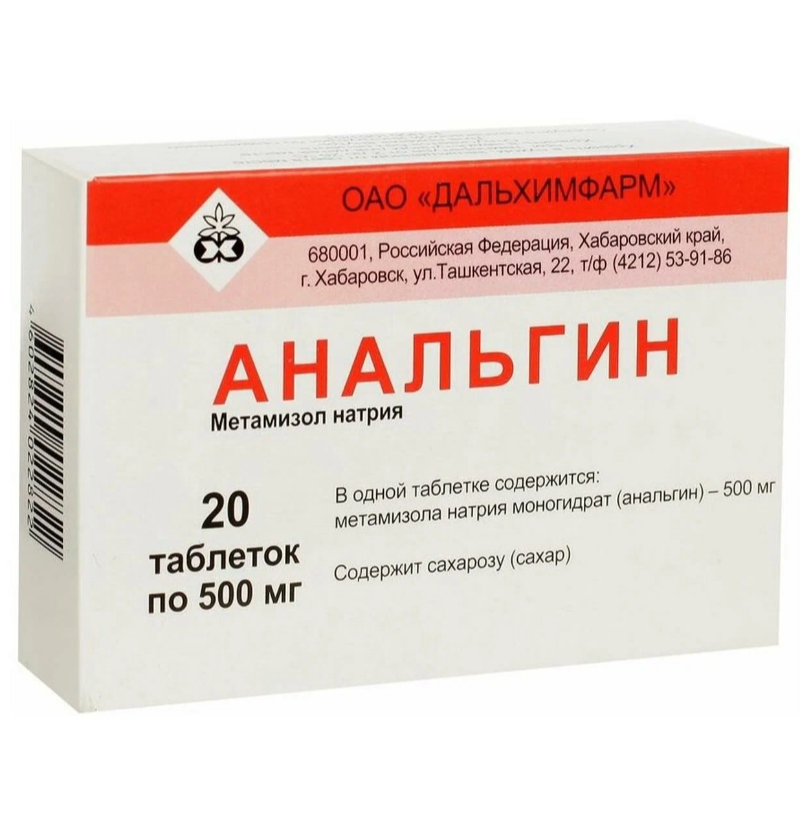 Активное вещество: ;метамизола натрия ;моногидрат (анальгин) — 500 ;мг.