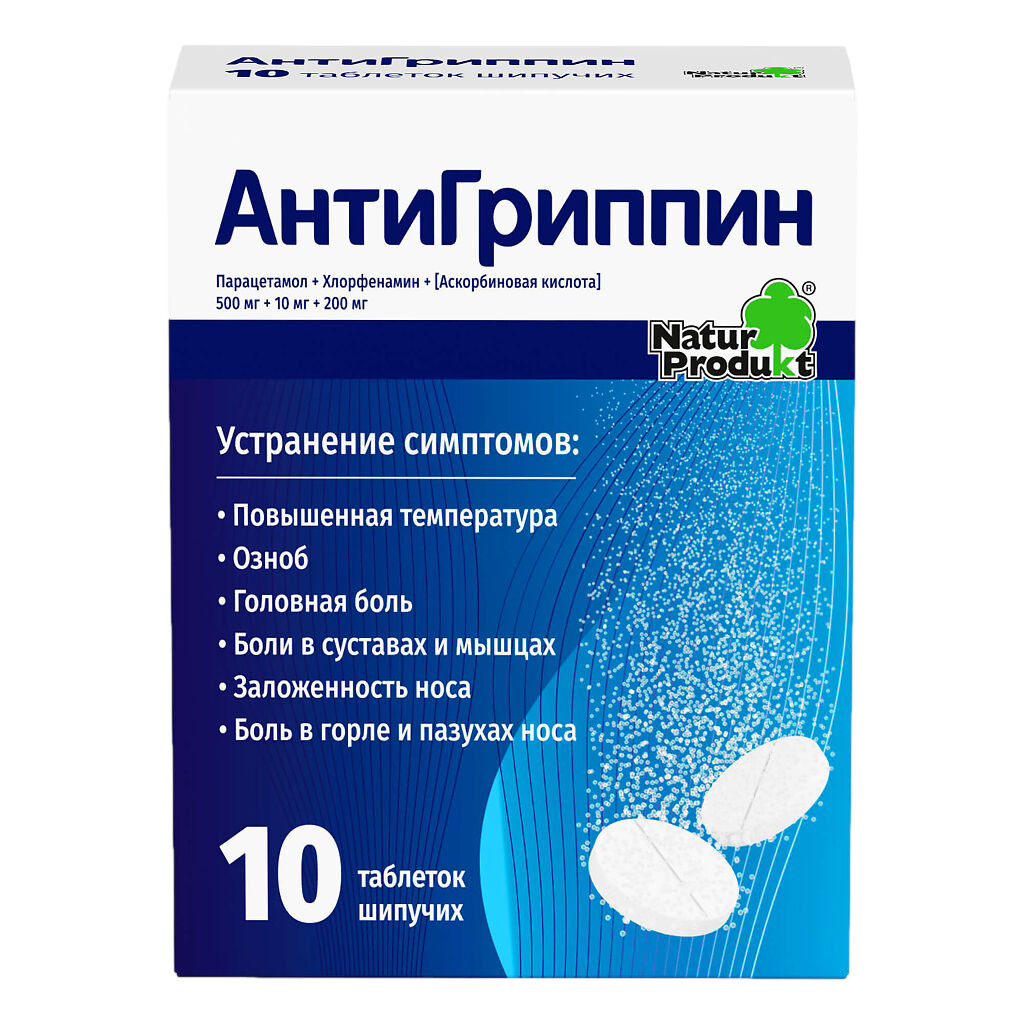 Антигриппин таблетки шипучие для взрослых №10