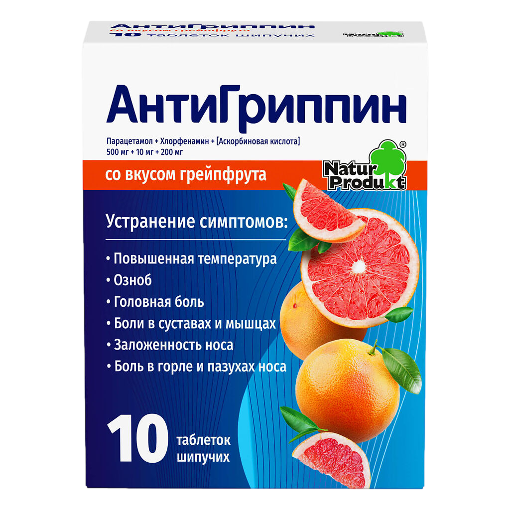 Антигриппин таблетки шипучие со вкусом грейпфрута №10