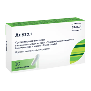 Противогеморроидальное комбинированное средство. Препарат Анузол обладает спазмолитическим, противовоспалительным, антисептическим, болеутоляющим, местным противовоспалительным, вяжущим и подсушивающим действием.