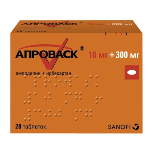 Фармакодинамические свойства каждого из активных веществ, входящих в состав препарата Апроваск®, ирбесартана и амлодипина, способствуют их аддитивному антигипертензивному действию при применении в комбинации по сравнению таковым при применении каждого этих препаратов в отдельности. Как антагонисты рецепторов ангиотензина II (АРА11), так и блокаторы «медленных» кальциевых каналов, снижают артериальное давление (АД) за счёт снижения периферического сопротивления сосудов, блокада поступления кальция в клетку и уменьшение обусловленного воздействием ангиотензина II сосудосуживающего действия являются дополняющими друг друга механизмами.