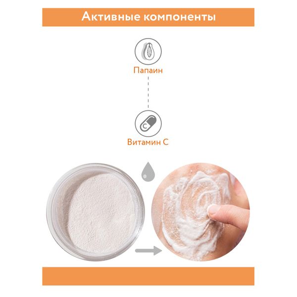 Энзимная пудра для умывания с папаином и витамином С не только глубоко очищает кожу лица, но и выравнивает тон кожи, уменьшает пигментацию, придавая коже естественное сияние. При добавлении воды пудра превращается в легкую пену, активируя действие мягкого очищающего комплекса и витамина С, превращая процесс умывания в настоящий ритуал красоты.