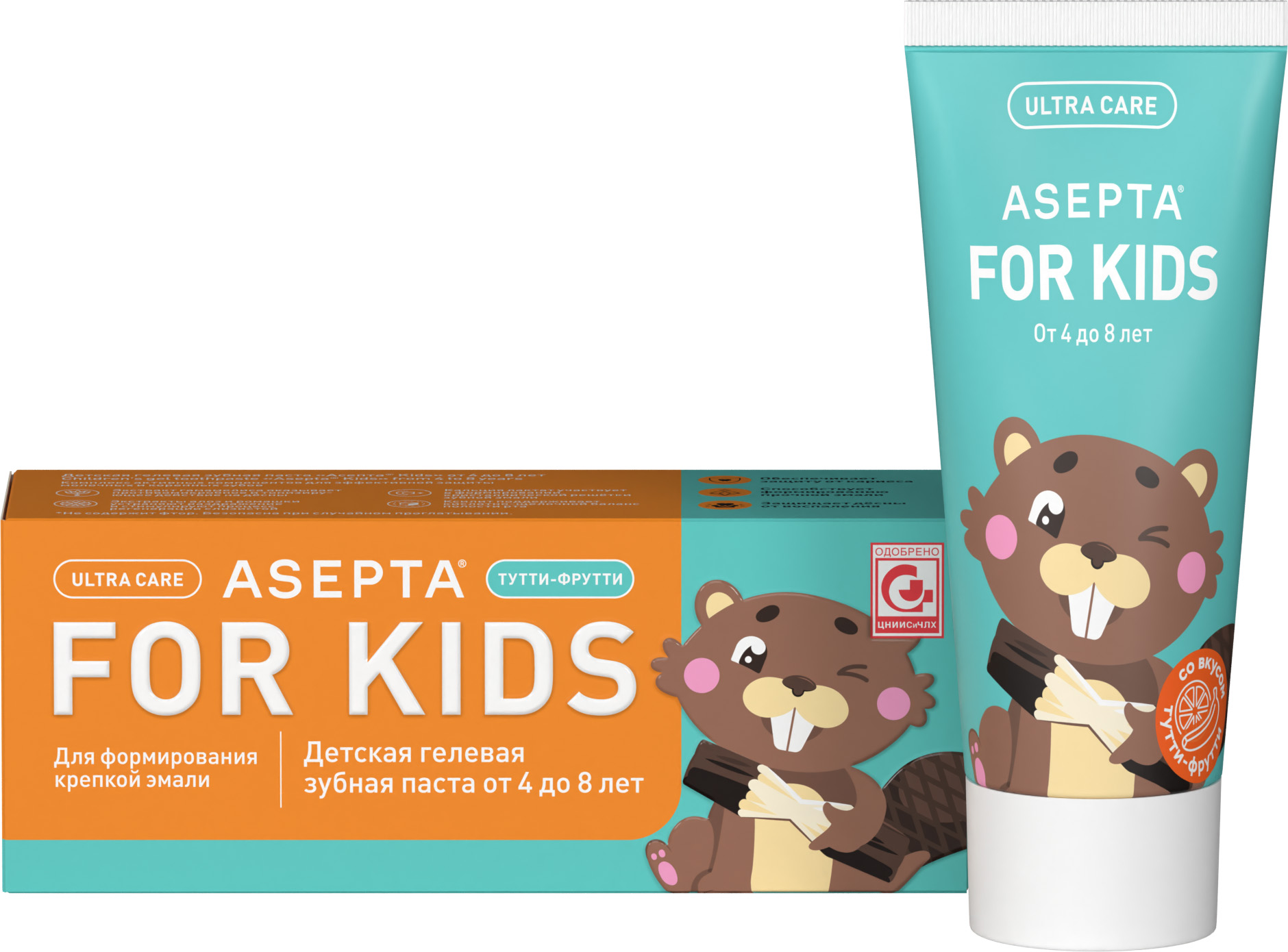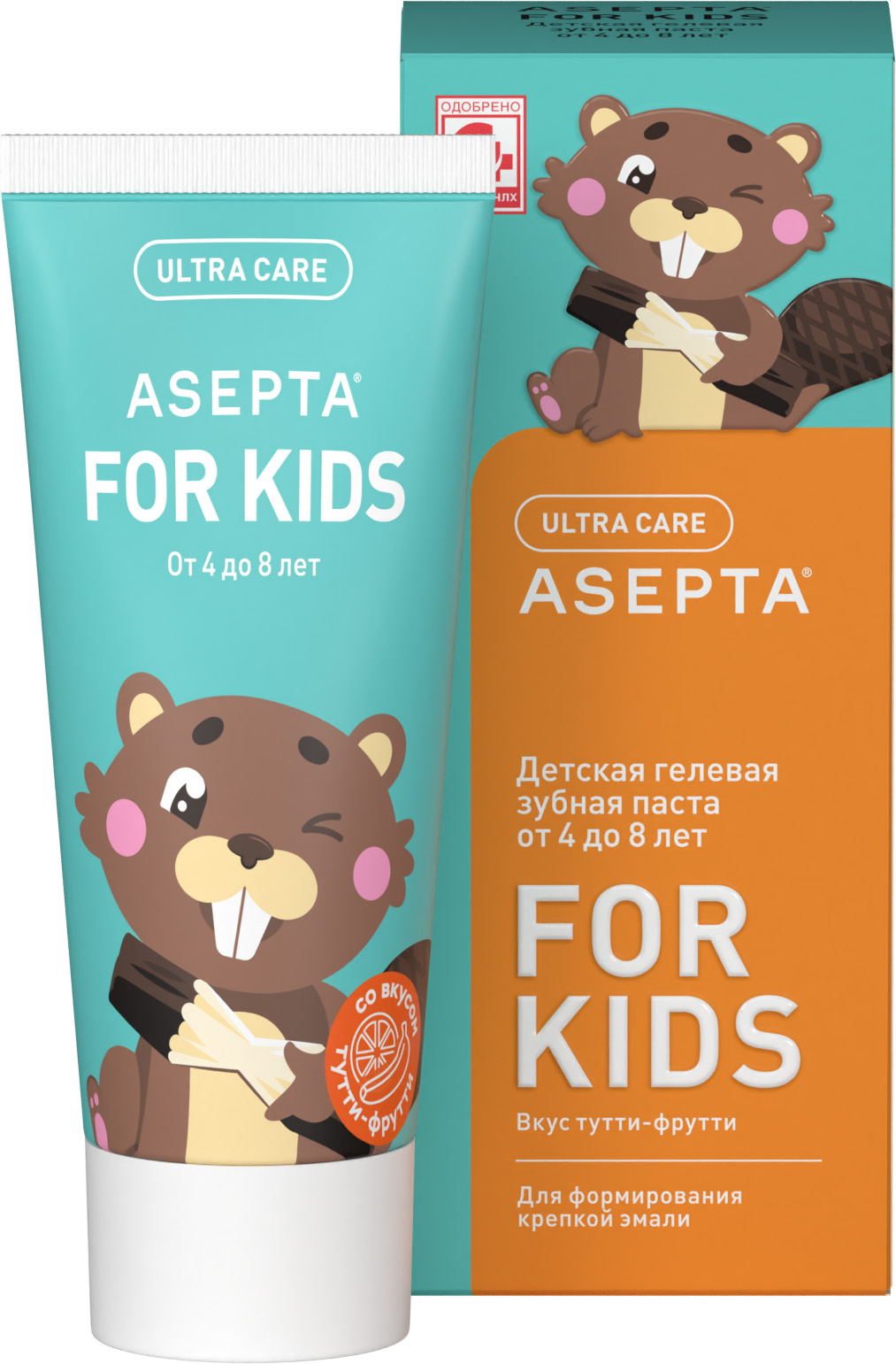 Асепта Kids Вкус Тутти-фрутти детская гелевая зубная паста от 4 до 8 лет туба 50мл