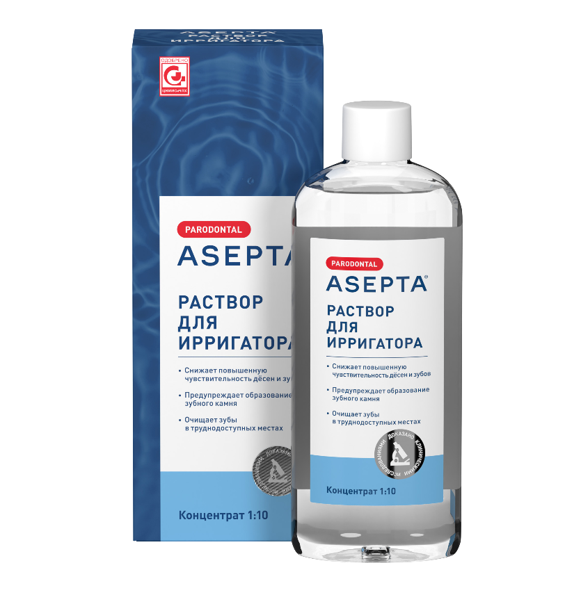Для промывания ротовой полости с помощью ирригатора можно использовать обычную чистую воду. Однако наибольшей эффективности при очищении ротовой полости ирригатором можно добиться, если использовать специальный раствор для ирригатора. кроме того, простая вода может сократить срок службы прибора, а также является питательной средой для размножения патогенной микрофлоры. Растворы для ирригатора полости рта могут значительно различаться по своему составу и действию, так, например, существуют специальные составы для лечения различных заболеваний, для отбеливания зубов или профилактической чистки. Раствор для ирригатора «АСЕПТА» может использоваться как в лечебных, так и в профилактических целях. Он препятствует развитию кариеса, защищает слизистые оболочки и десны от воспаления, помогает сохранить свежесть дыхания на долгое время.