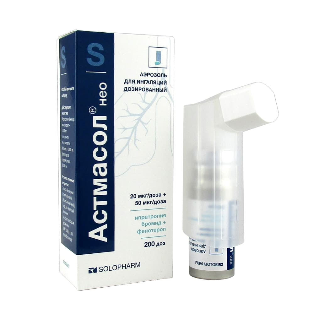 Астмасол нео аэрозоль для ингаляций дозированный 20мкг/доза+50мкг/доза баллон 200доз