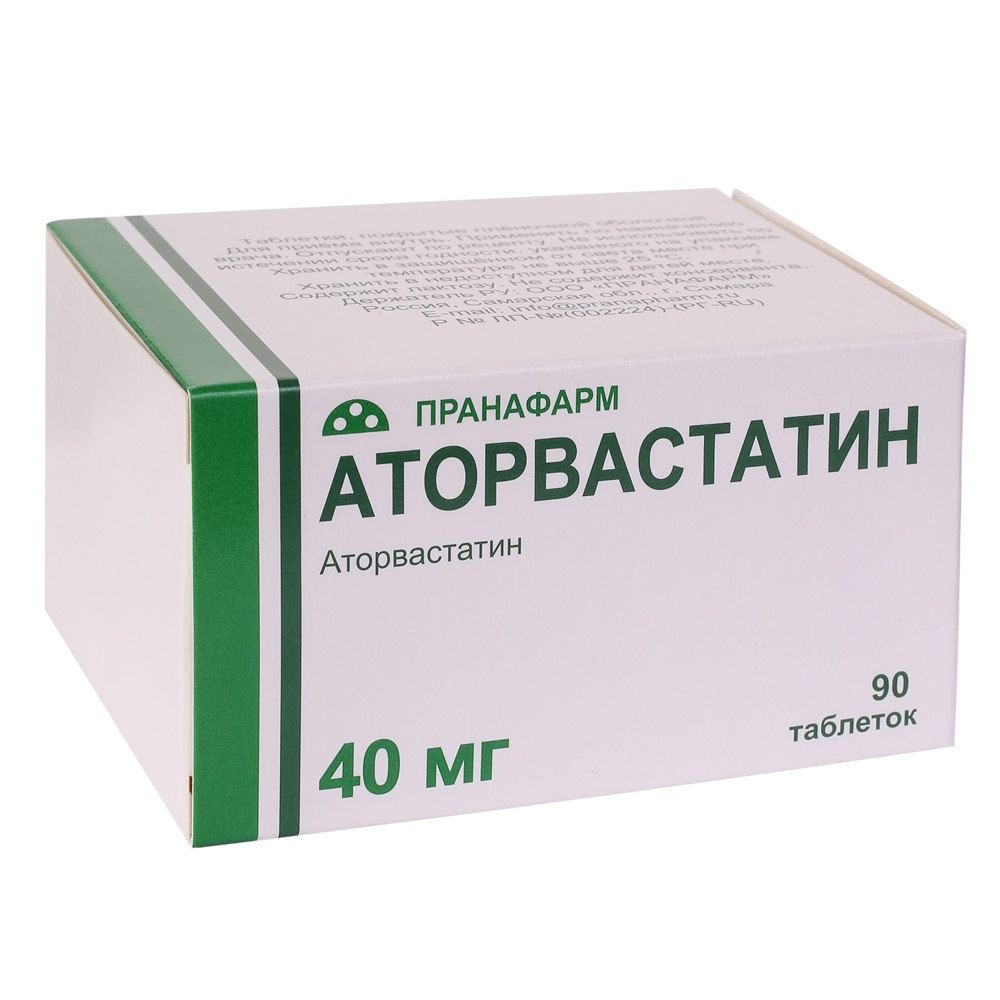 Аторвастатин таблетки покрытые плёночной оболочкой 40мг №90