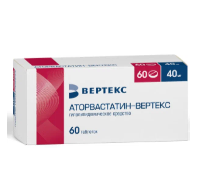 Аторвастатин-ВЕРТЕКС, 40 мг, таблетки, покрытые плёночной оболочкой
