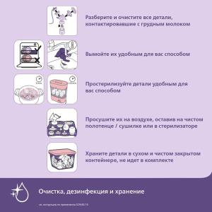 • Легко мыть и собирать - Небольшое количество деталей молокоотсоса позволяют без труда собирать и очищать молокоотсос.