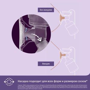 • Для сцеживания и кормления малыша - Для кормления малыша сцеженным молоком просто прикрепите соску к бутылочке, которые входят в комплект молокоотсоса. Для хранения молока перед последующим кормлением закройте бутылочку с помощью уплотнительного диска, входящего в набор молокоотсоса.