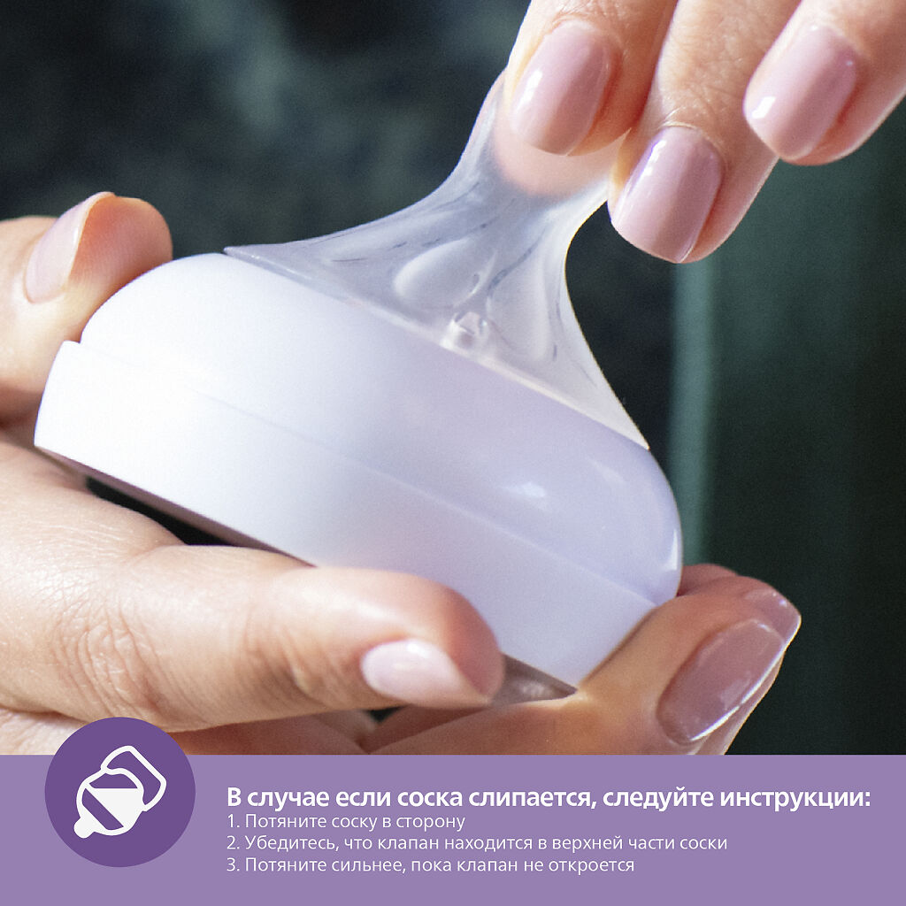 Бутылочки Philips Avent Natural Response отличаются от предыдущих серий конструкцией соски. Как и с кормлением грудью, вам может потребоваться несколько дней, чтобы приспособиться к ней. Это нормально.