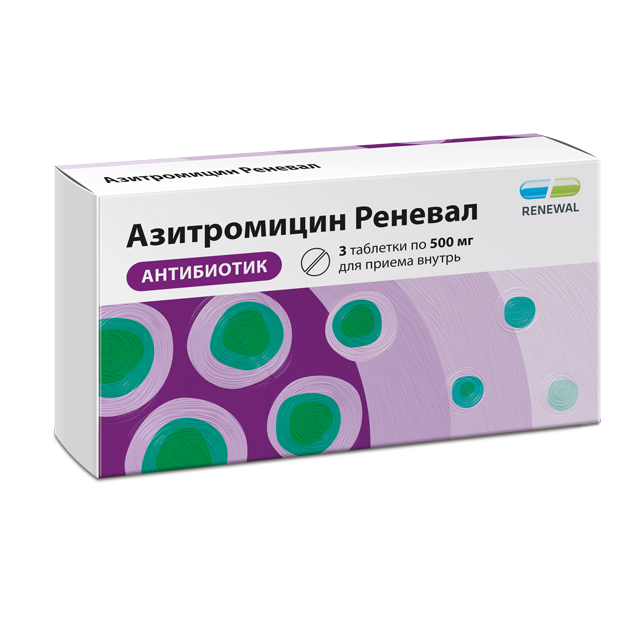 Азитромицин Реневал таблетки покрытые пленочной оболочкой 500мг №3