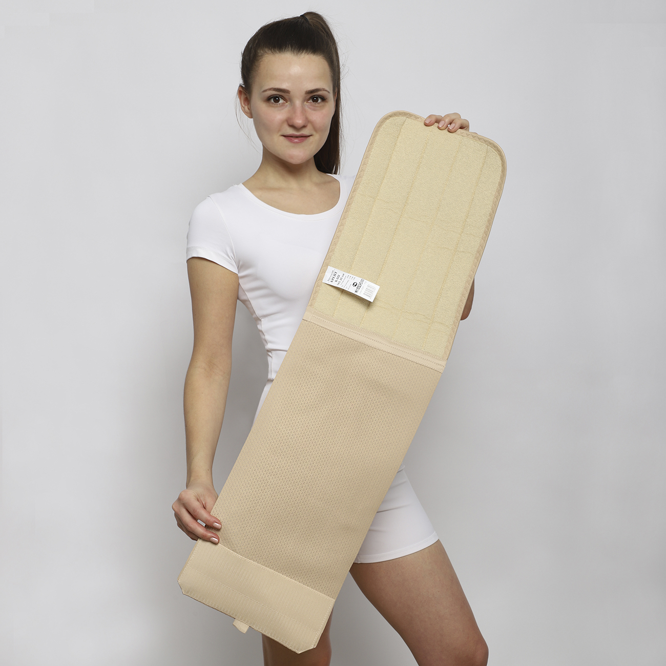 - Мягкая панель ложится на послеоперационный шов и фиксируется на застежку-липучку Velcro.