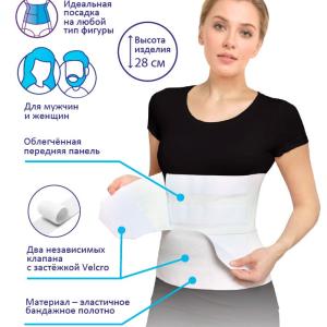 - Высота 28 см – изделие охватывает обширную область брюшной стенки и подходит для высоких пациентов.