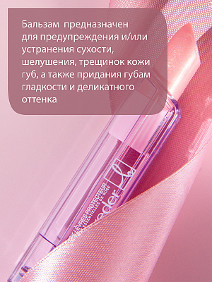 Бальзам предназначен для предупреждения и/или устранения сухости, шелушения, трещинок кожи губ, а также придания губам гладкости и деликатного оттенка.