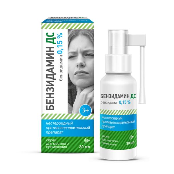 Бензидамин ДС спрей для местного применения 0,15% флакон 30мл