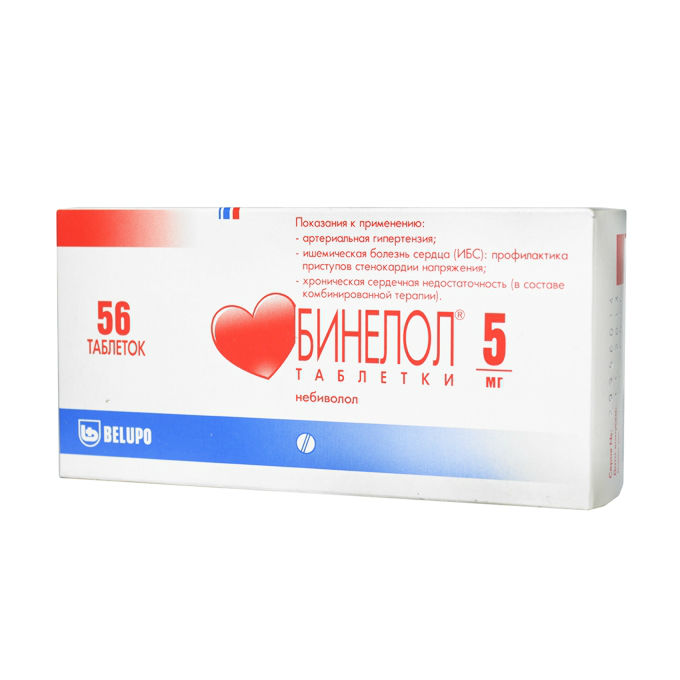 Активное вещество: небиволол (в форме небиволола гидрохлорида) — 5,00 мг
