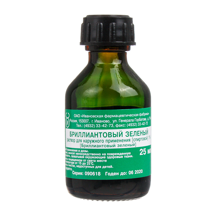 Раствор Бриллиантового зеленого обладает обеззараживающим действием.
