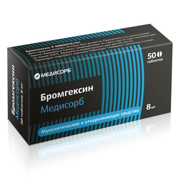 действующее вещество: ;бромгексина ;гидрохлорид 8,0 ;мг;