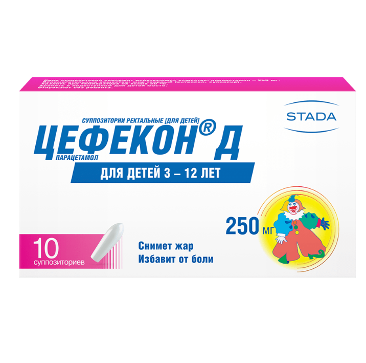| 3–10 лет | 17–30 кг | 1 суппозиторий по 250 мг |