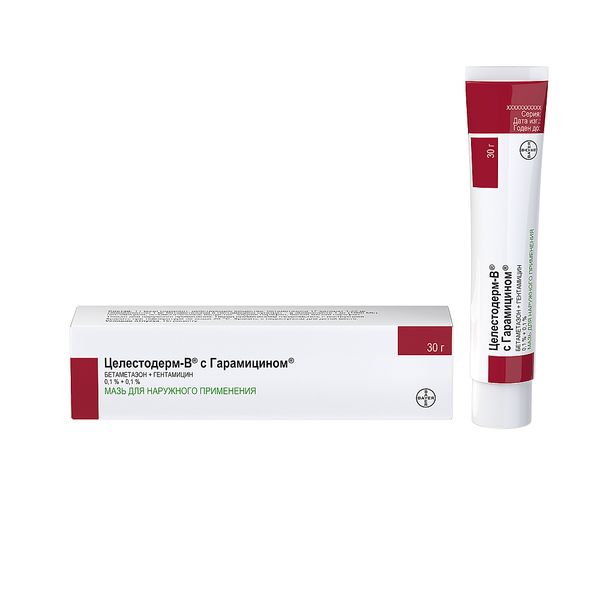 Крем Целестодерм® — В с Гарамицином® содержит глюкокортикостероид (ГКС) бетаметазона валерат, оказывающий противовоспалительное, противозудное и сосудосуживающее действие, и антибиотик гентамицин, обладающий антибактериальной активностью широкого спектра действия. В число восприимчивых к гентамицину бактерий входят чувствительные штаммы Staphylococcus aureus (коагулазо-позитивный, коагулазо-негативный и некоторые пенициллиназо-продуцирующие штаммы), а также грамотрицательные бактерии Pseudomonas aeruginosa, Aerobacter aerogenes, Escherichia coli, Proteus vulgaris и Klebsiella pneumoniae.