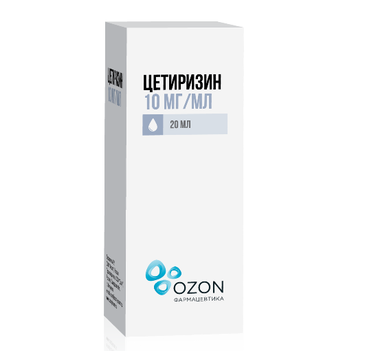 Цетиризина дигидрохлорид, капли для приёма внутрь 10 мг/мл, показан у взрослых и детей с 6 месяцев и старше для облегчения: