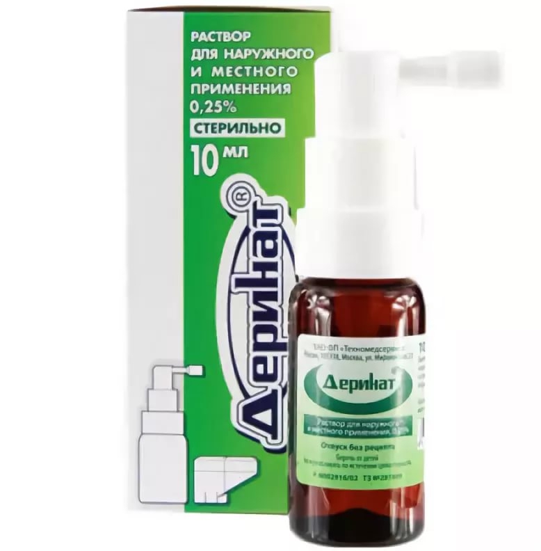 Деринат раствор для местного и наружного применения 0,25% флакон с насадкой-распылителем 10мл
