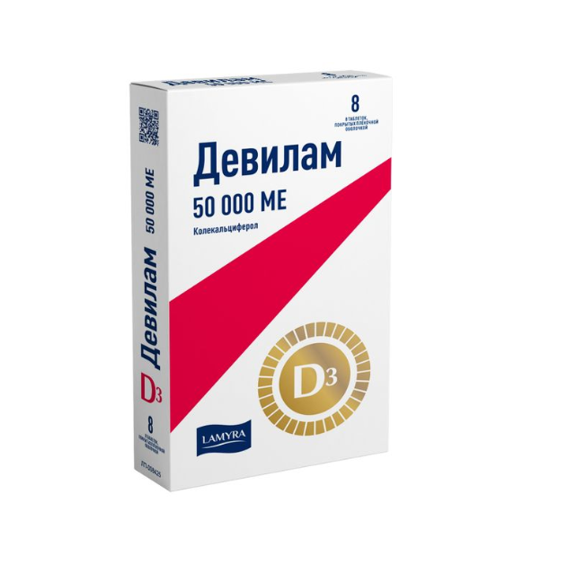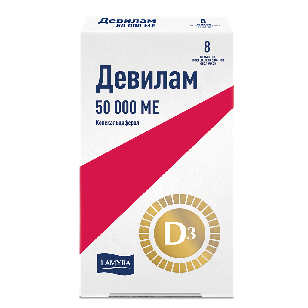 Девилам таблетки покрытые плёночной оболочкой 50000МЕ №8