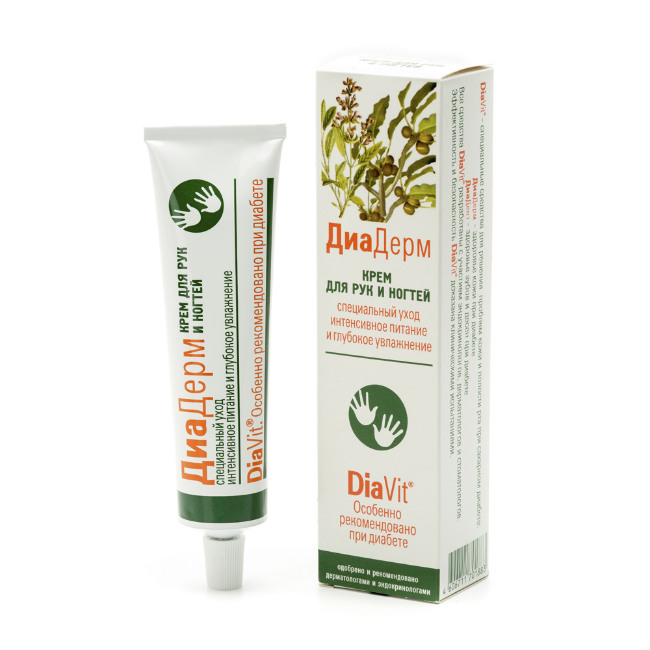Крем ДиаДерм предназначен для ухода за очень сухой, шелушащейся, загрубевшей кожей рук, слоящимися и ломкими ногтями, трещинами на кончиках пальцев.
