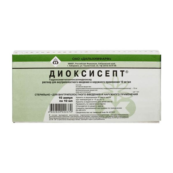 Диоксисепт раствор для внутриполостного введения и наружного применения 10мг/мл ампулы 10мл №10