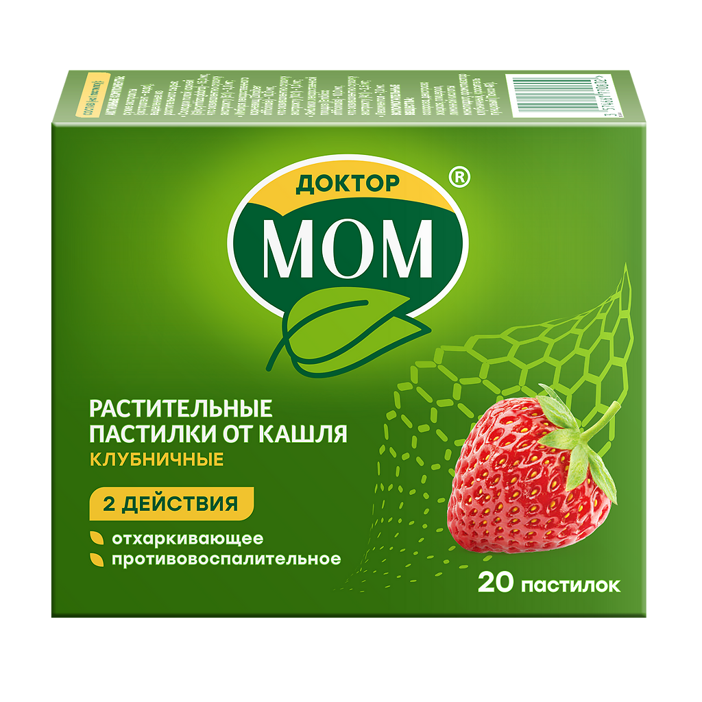 Доктор Мом растительные пастилки от кашля клубничные №20