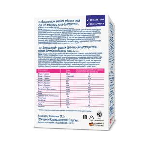 Дикальция фосфат (кальций), микрокристаллическая целлюлоза (агент антислеживающий), магния оксид (магний), L-аскорбиновая кислота (витамин С), кальция карбонат (кальций), железа фумарат (железо), пальмовое масло (полностью гидрогенизированное), калия йодат (йод), кроскармеллоза (стабилизатор), гидроксипропилметилцеллюлоза (загуститель), никотинамид (ниацин), цинка сульфат (цинк), жирные кислоты (стабилизатор), бета-каротин (витамин А), D-пантотенат кальция (пантотеновая кислота), соли магния стеариновой кислоты (агент антислеживающий), крахмал, холекальциферол (витамин D3), тальк (агент антислеживающий), пиридоксина гидрохлорид (витамин В6), натрия рибофлавин 5-фосфат (витамин В2), диоксид кремния аморфный (агент антислеживающий), поливинилпирролидон (стабилизатор), тиамина мононитрат (витамин В1), оксиды и гидроксиды железа (красители), глицерин (агент влагоудерживающий), фолиевая кислота, цианокобаламин (витамин В12), биотин.