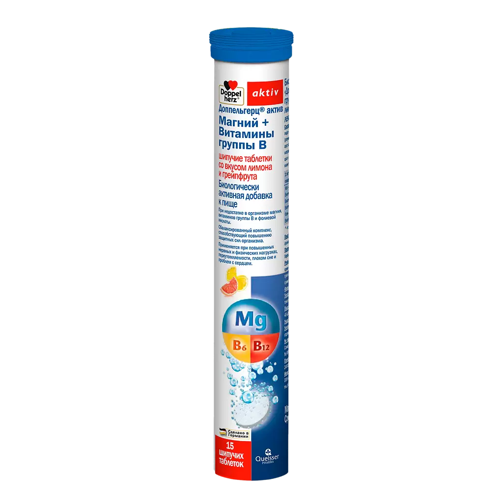 Доппельгерц актив Магний + Витамины группы B таблетки шипучие со вкусом лимона и грейпфрута массой 6500мг №15