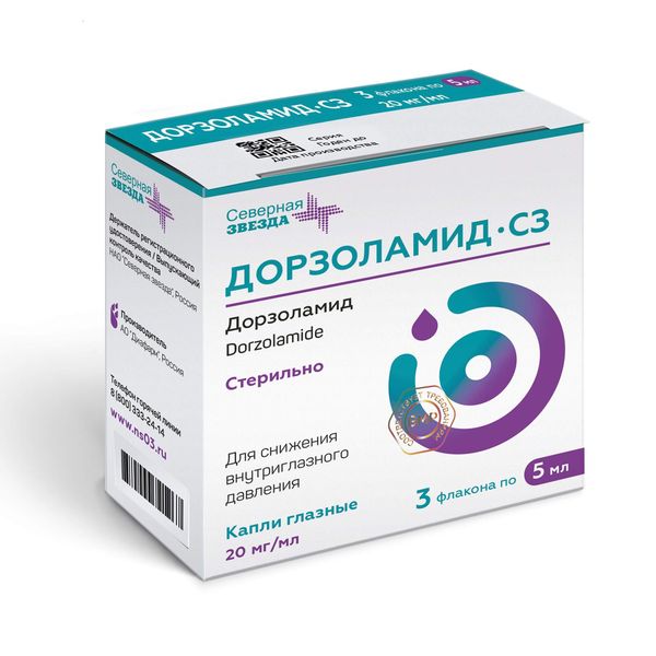 Дорзоламид-СЗ капли глазные 20мг/мл флакон 5мл №3