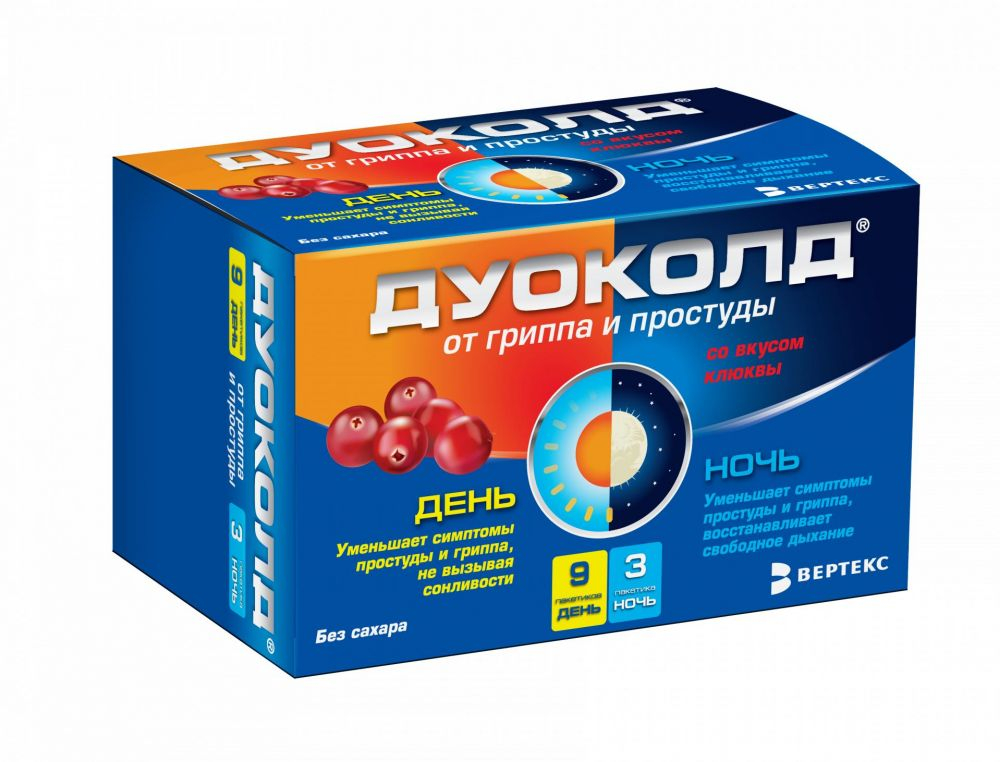 Дуоколд набор порошков для приготовления раствора для приёма внутрь со вкусом клюквы пакетики 5г день №9 + ночь №3