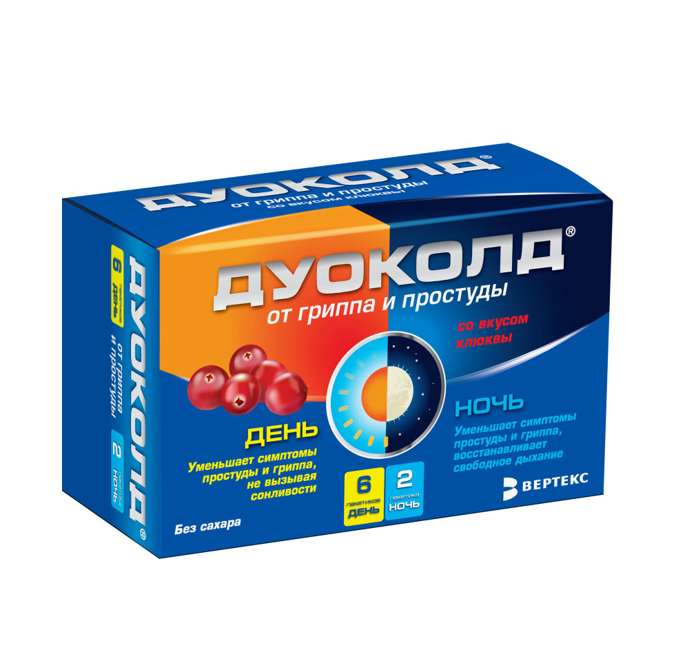 Дуоколд набор порошков для приготовления раствора для приёма внутрь со вкусом клюквы пакетики 5г день №6 + ночь №2