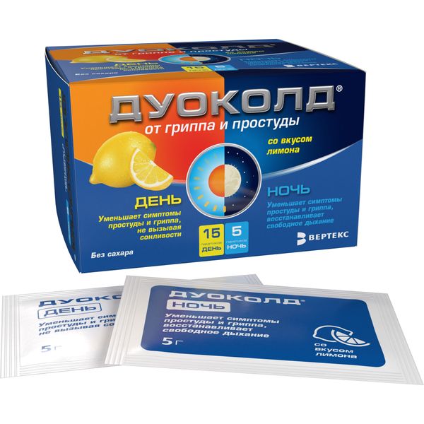 Дуоколд набор порошков для приготовления раствора для приёма внутрь со вкусом лимона пакетики 5г день №15 + ночь №5