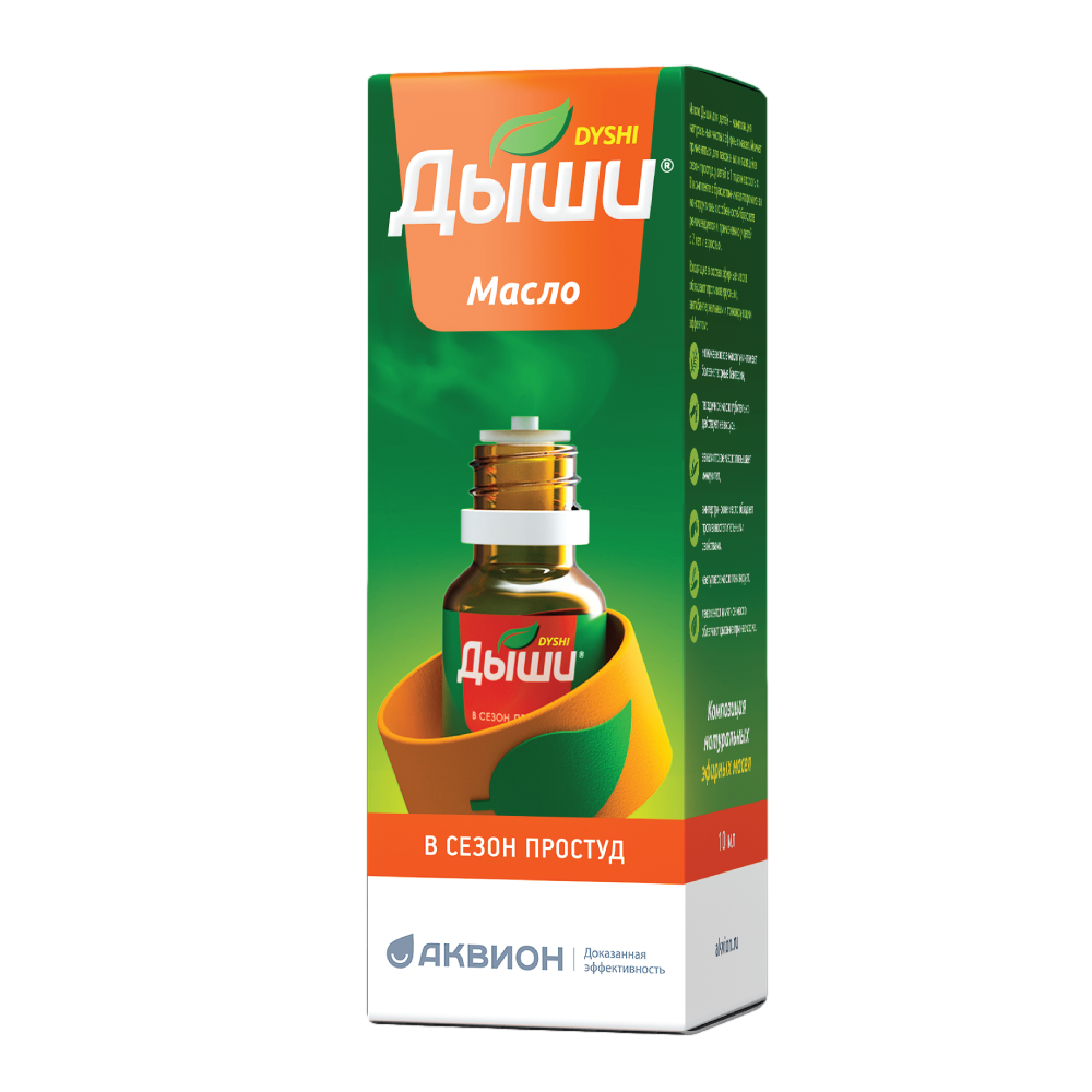 Масло Дыши® – это композиция из 6 натуральных чистых эфирных масел и левоментола. Они обладают антисептическими, противовоспалительными и тонизирующими свойствами. Пары эфирных масел обеззараживают вдыхаемый воздух и тем самым препятствуют попаданию болезнетворных вирусов и бактерий в организм.