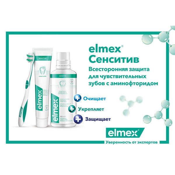 Зубная паста Элмекс Сенситив Плюс защищает от повышенной чувствительности зубов и кариеса дентина, содержит высокоэффективный активный ингредиент органического происхождения - аминофторид, который способствует реминерализации зубной эмали. Снижает повышенную чувствительность зубов за счет обтурации открытых дентинных канальцев глобулами фторида кальция. Обеспечивает бережный уход за чувствительными зубами благодаря низкому уровню абразивности и минимальному истиранию твердых тканей зуба.